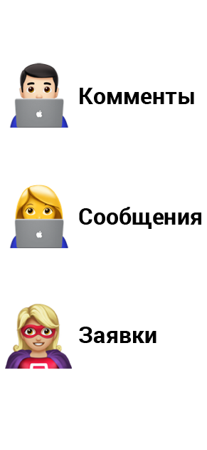 Все комментарии могут пересылаться в Telegram, Viber, личку ВК и на емэйл, а также - отправляться в AmoCRM, в Google-таблицу или просто выгружаться в Excel для любой аналитики.